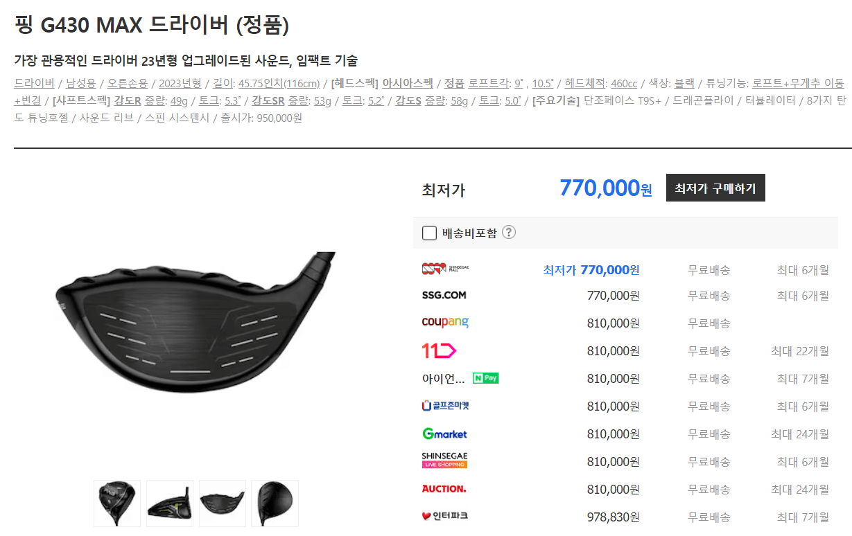 핑 드라이버 G430 MAX 가격