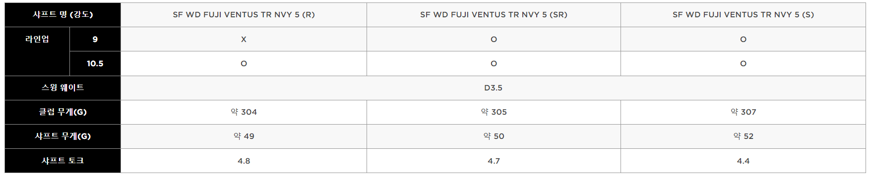 패러다임 엑스 드라이버 샤프트는 벤투스 샤프트만 선택 가능합니다.