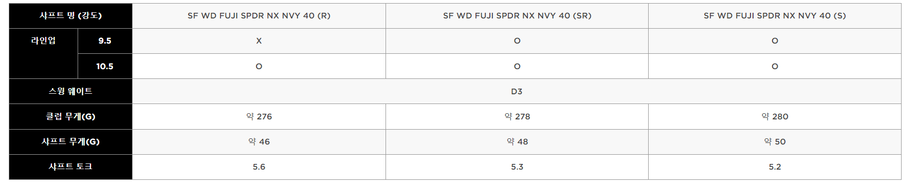 패러다임 엑스 드라이버 샤프트 스펙
