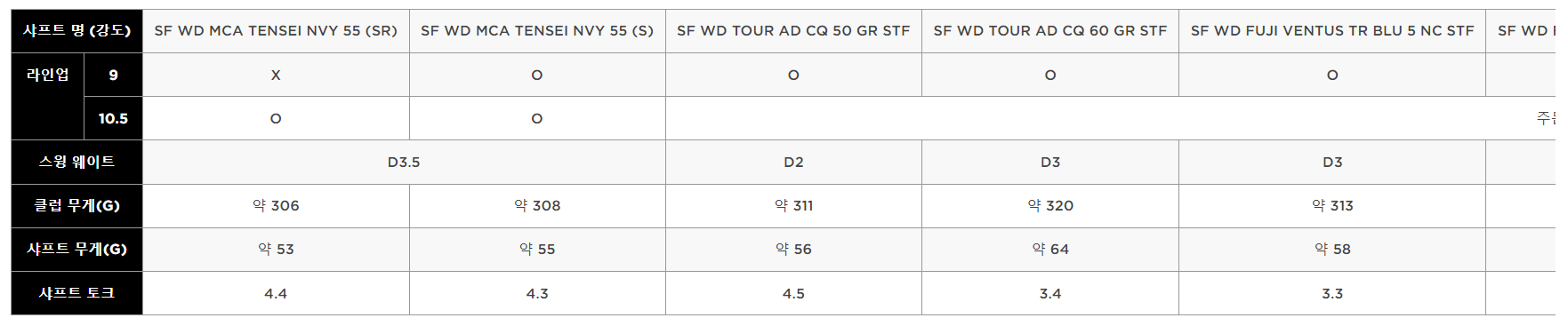 패러다임 드라이버는 텐세이, 벤투스, 엘디오 샤프트 중 선택할 수 있습니다.