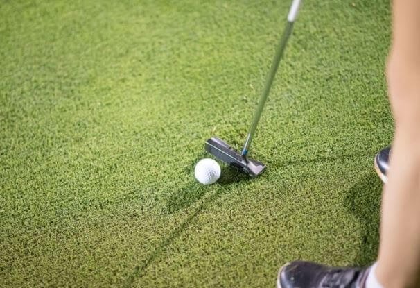첫 번째, 퍼터 잘하는 법은 바른 자세의 정렬입니다. 골프의 모든 클럽이 그렇지만 특히 퍼터는 자세가 90프로라고 해도 과언이 아닙니다. 먼저 발을 어깨너비로 벌리고 양발의 위치를 중앙에서 똑 같이 정렬합니다. 나도 모르게 오른쪽 발이 더 나오는 경우가 있는 데 이럴 경우는 아무리 스트로크를 잘해도 공의 방향이 틀어질 수밖에 없습니다.