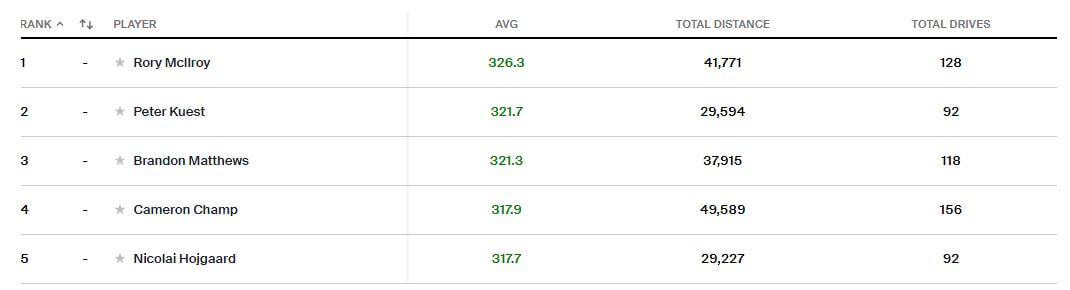그럼 전 세계 최고의 선수들이 모인 PGA와 LPGA의 드라이버 비거리는 얼마일까요? 2022-2023년 미국 프로골프 (PGA)의 평균 드라이버 샷은 약 274 미터 (299.9 야드)입니다. 로리 맥길로이 선수가 298미터 (326.3)을 기록하여 최 장타를 기록했네요.