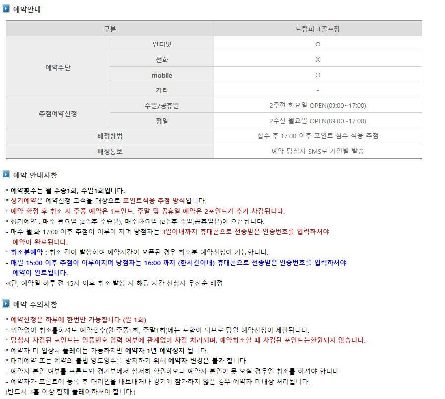 이렇게 어렵게 포인트까지 쌓아가면서 드림파크 CC를 가려고 하는 이유는 그만큼 가성비가 좋기 때문입니다. 포인트만 잘 적립하면 1년에 몇 번은 갈 수 있기에 많은 분들이 포인트에 도전하고 있습니다. 포인트를 쌓으려면 아이러니하게 잘 떨어져야 하는데, 경쟁률이 높은 시간대인 월, 화요일 11시 대에 신청하면 잘 떨어지니 포인트 많이 쌓으시기 바랍니다! 본인의 포인트를 조회하면서 꾸준히 쌓아가세요!