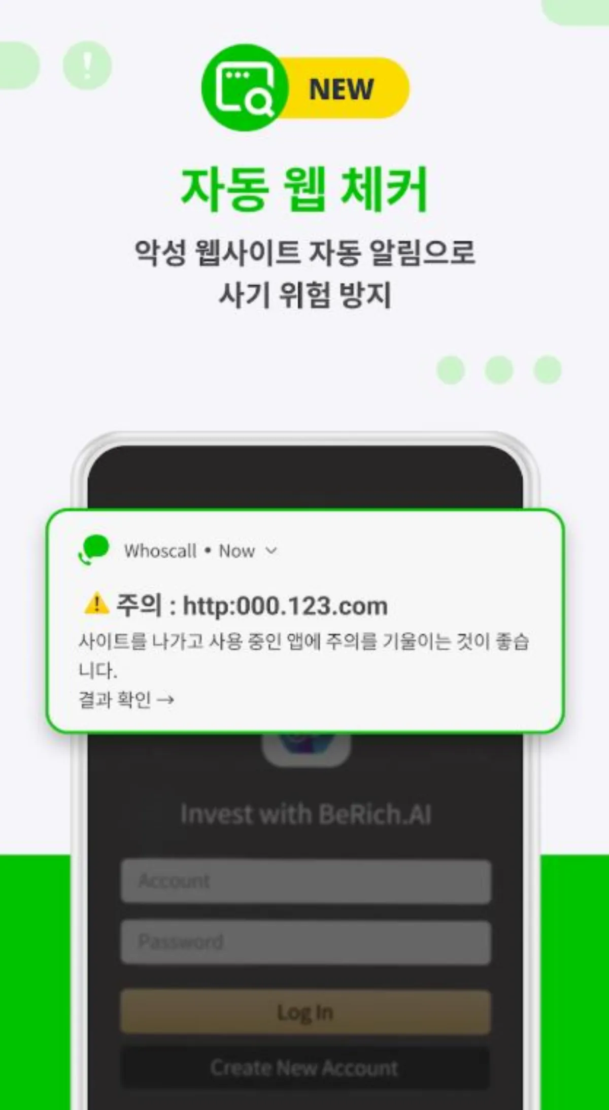- 자동 웹 체커 기능으로 악성 웹사이트 자동 알림 및 사기 위험 방지