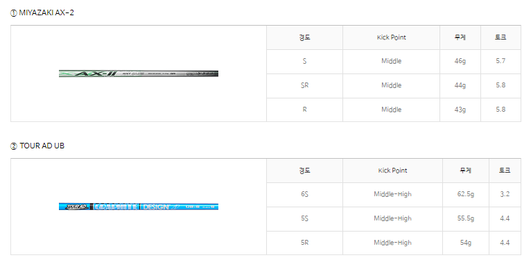 젝시오 12 드라이버 샤프트 스펙 (클릭하여 확대보기)