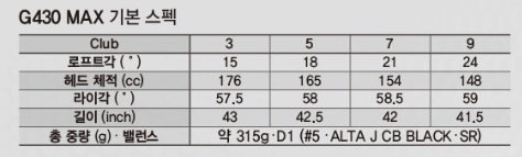핑 G430 맥스 우드 스펙 (클릭하여 확대보기)