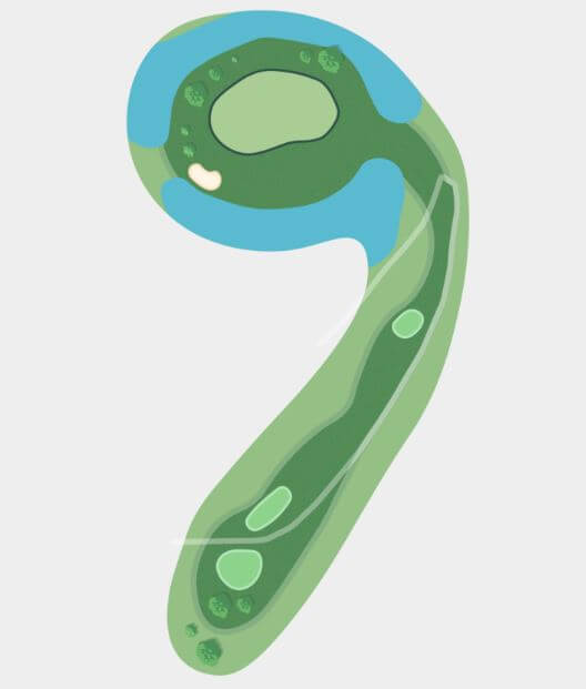 레이크 코스의 1번 홀은 힐데스하임 CC의 시그니처 홀로서 우측에 멋진 폭포 해저드가 있는 홀입니다. 해저드만 극복하면 투온으로 파를 쉽게 할 수 있습니다. 제가 좋아하는 레이크 2번 홀은 해저드로 둘러싸인 아일랜드 163미터, 파 3홀인데요 정확한 아이언샷으로 니어와 버디까지 잡은 홀입니다.