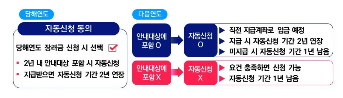 60세 이상 고령자 및 중증 장애인이 장려금 신청기간에 동의하면, 향후 2년 동안 신청 대상 포함 시 자동으로 신청되는 제도를 운영 중이니, 해당되시는 분은 꼭 자동 신청하세요!