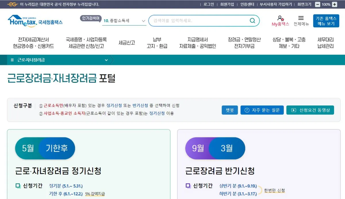아래 국세청 근로장려금 포털에서 바로 신청하세요!